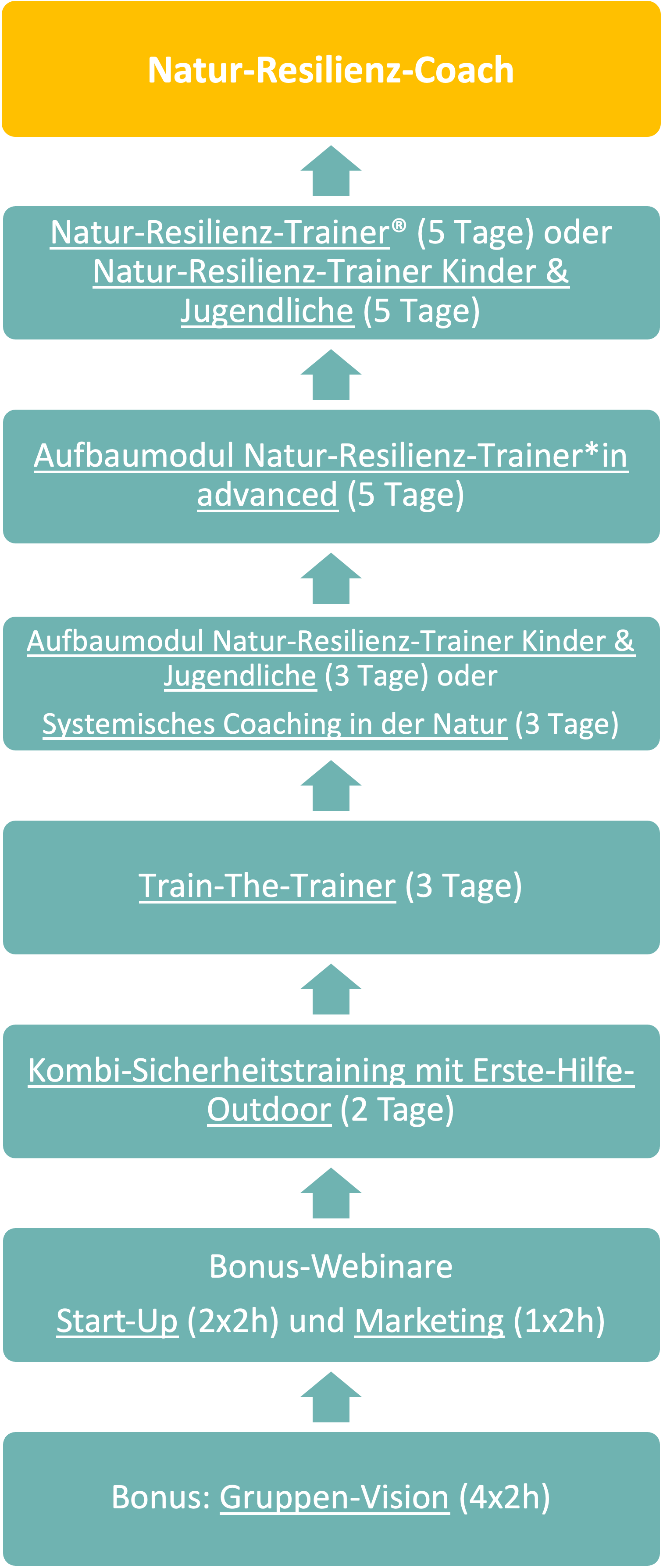 Folgende Einzel-Ausbildungsmodule beinhaltet die Ausbildung Natur-Resilienz-Coach: