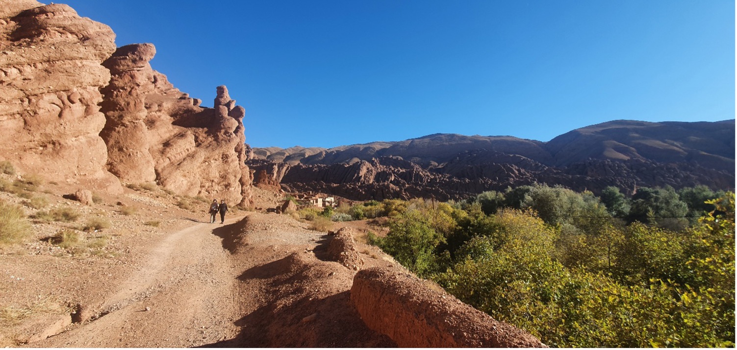 4.Tag: Spaziergang durch das Dadestal, Work-Life-Balance und Übungen zu Achtsamkeit und Meditation; Mittagessen bei einer Berberfamilie mit typischen, leckeren Gerichten; landestypisches Abendessen und Übernachtung im Hotel.