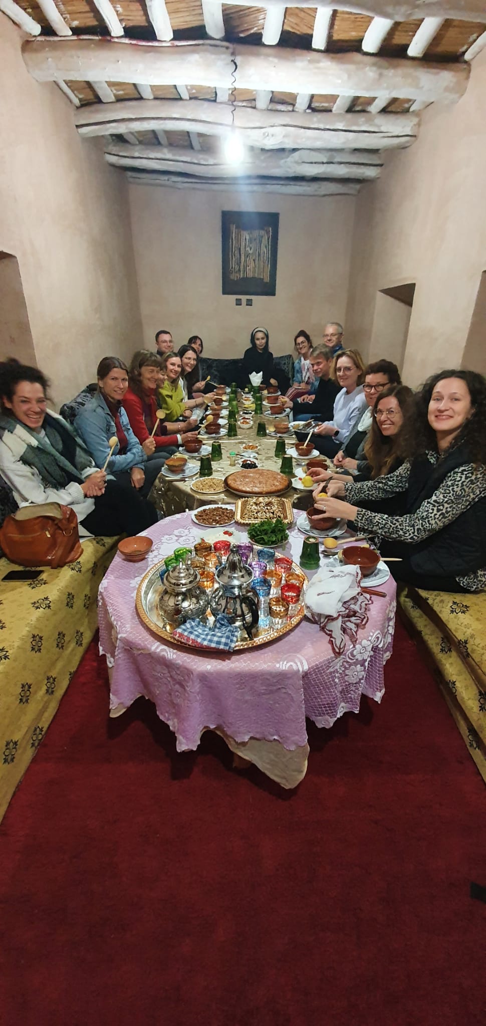 Der Bildungsurlaub in Marokko – Natur-Wüsten Retreat Marokko -Achtsamkeitstraining für den Berufsalltag in der 1. Dezemberwoche 2024 war genial. Wir waren eine tolle Gruppe, die sich sehr gut verstanden hat. Viele neue Eindrücke sind entstanden und das Eintauchen in eine andere Welt hat begeistert. Wir sind durch die Natur gewandert und mit den Dromedaren durch die Wüste geritten, zusammen mit einer Berberfamilie wurde gebacken und eine Tajine zubereitet. Man konnte mit den durchgeführten Achtsamkeitsübungen von Carola vom Alltag abschalten und die Natur voll und ganz genießen. Hamoud, als muttersprachlicher Coach, hat uns viel über Marokko vermittelt und Kontakte zur einheimischen Bevölkerung hergestellt. Schöne Hotels, gutes Essen und jeden Tag ein Picknick in der Natur. Ganz herzlichen Dank für alles!