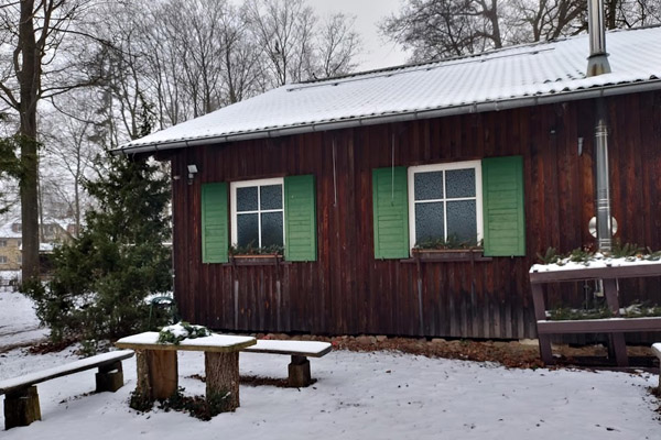 – in 5 rustikalen Holzhütten auf dem Gelände – ausgelegt für jeweils 2 Personen (Einzelbungalow nur bedingt möglich, z.B. bei Waldbaden mit Hund). Sanitäre Anlagen stehen als Gemeinschaftsobjekt im Haupthaus zur Verfügung. Hinweis: Bitte eigene Handtücher mitbringen!