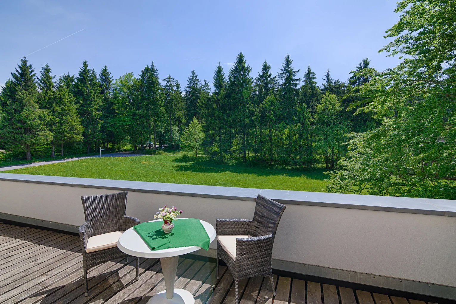➤ Komfortable Ausstattung (Zimmer mit eigenem Bad, TV und Blick auf den Thüringer Wald)